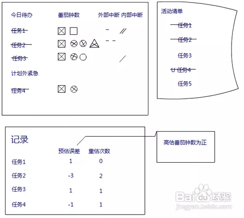 3张表格一定要准备好,并严格按照番茄工作法的要求来做。“活动清单”表格列举近期要做的事情,可不断增加新的活动,删除已完成的活动。每天清晨起来填写“今日待办”清单,根据“活动清单”列举今天要完成的任务。结束一天的学习后完成“记录”表格,根据自己白天记录的数据(每天完成的番茄数,每项任务消耗的番茄数,中断次数等等),进行分析和反思,看看结果比你想的多了还是少了?你觉得日程表里的事应该更多还是更少?